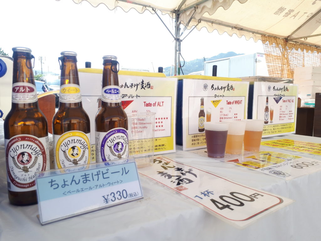 萩焼まつりでチョンマゲビール販売