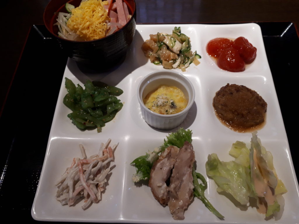 萩本陣の健康ランチバイキングは、毎週土曜日と日曜日の午前11時30分から午後2時まで開催されています。予約なしでもOKですが、時期や時間により満席ということもあるようなので、12時半以降に受付をするのが得策のようです。大人一人1,550円ほか。