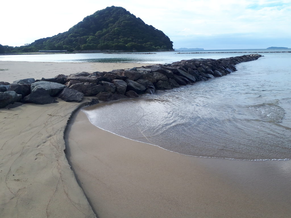 今日は台風の影響か一日中風が強かったのに、波はとても静かでした。萩の海はどうしてこんなに穏やかなのでしょうね。