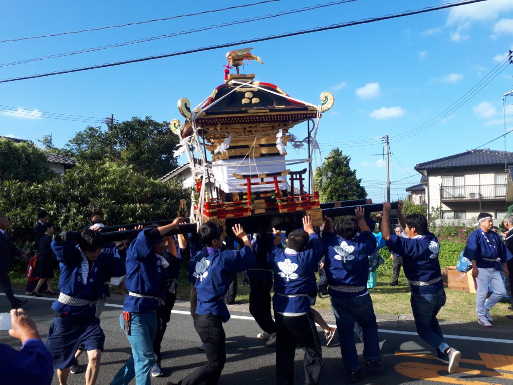 5月の三島神社の神輿担ぎの時には勝手が分からずお客さん状態でしたが、地域の仲間と一緒に声を出したり笑ったり、集合写真に収まったり、以前より溶け込むことができました。