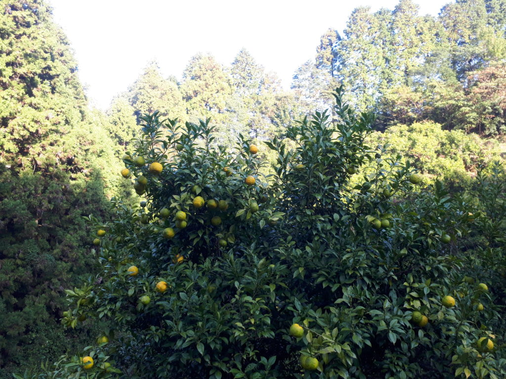 柑橘類の搾り汁を使用した調味料…ポン酢製造が主体のわが社には、10月から11月にかけて行われる恒例行事があります。会社には一部の留守番を残すのみで、自社所有の山で柚子狩りをするのです。