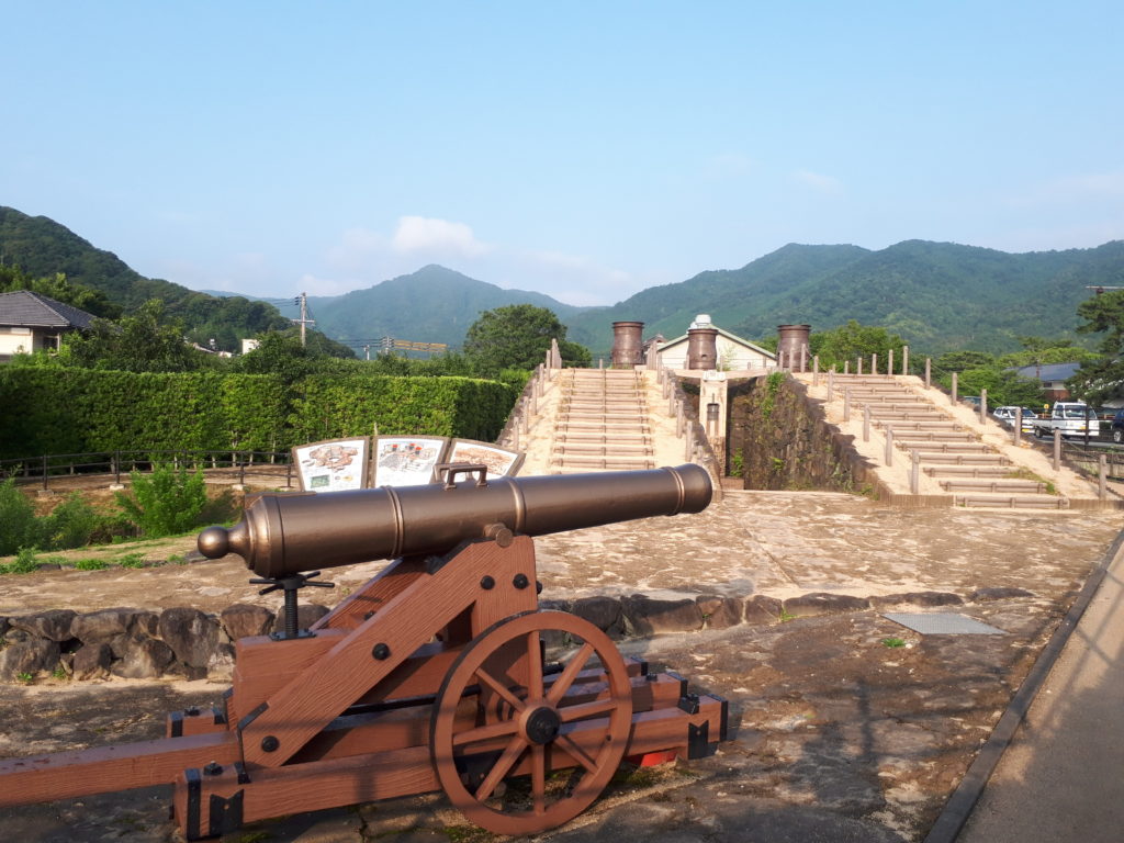 萩藩では、郡司家に対し洋式大砲の鋳造を命じ、一m前後の小規模な洋式大砲を鋳造させ、ペリー来航後には三mを超えるカノン砲の鋳造を命じました。これらの大砲は文久3年(1863)、下関海峡を通過する外国船を砲撃するのに使われましたが、逆に英・仏・蘭・米による四国の連合艦隊に報復攻撃され、戦利品として持ち帰るか、または破壊されてしまったそうで、ほとんどが行方不明なのだそうです。