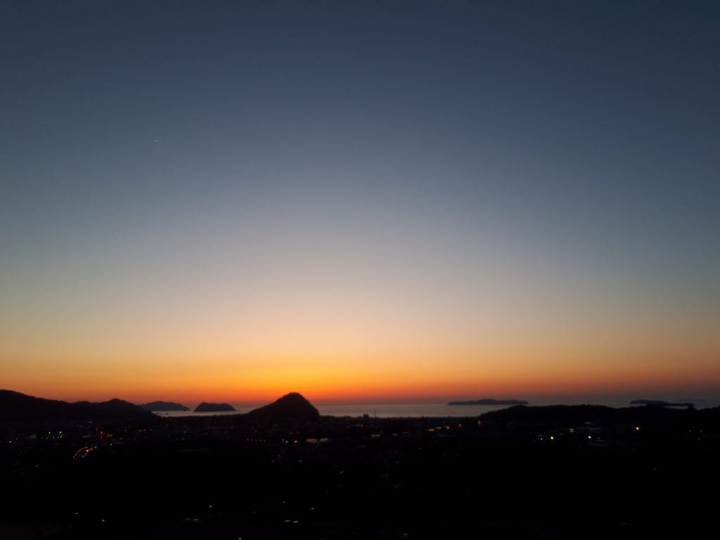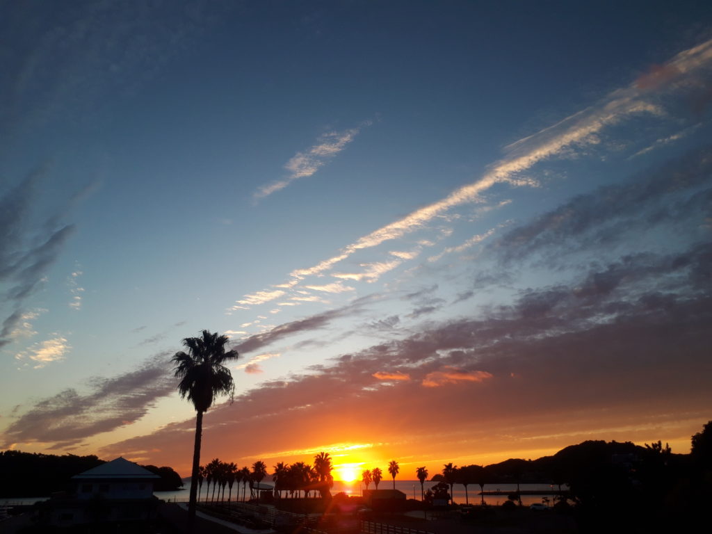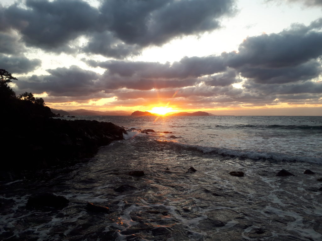 菊ヶ浜にて。仕事を終えてからランニングに出かけたら出会えた絶景の日没ショー。