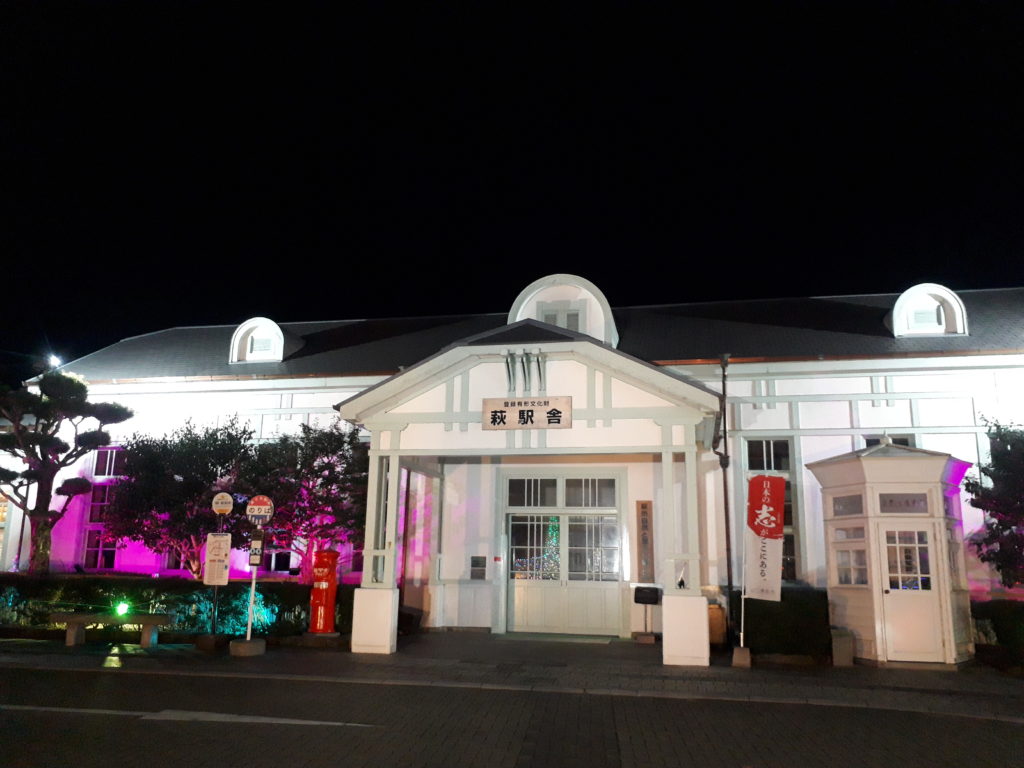 年の瀬の風物詩「2020萩イルミネフェスタ」が11月末から始まりました。国の登録有形文化財でもある外観も美しい萩駅舎とその周辺の夜が輝いていますよ。点灯時間は午後5時30分から午後11時までで、2021年1月5日まで開催されます。