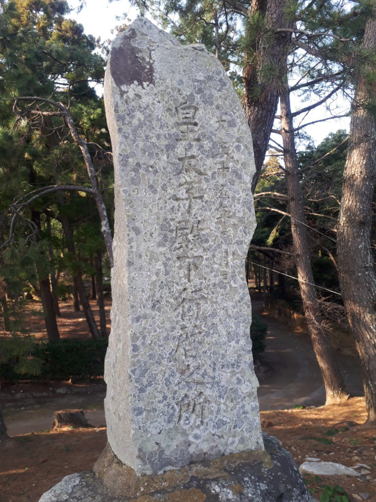 「展望所」に建つ「皇太子殿下行啓之所」という碑です。冒頭の写真は、ここから見た菊ヶ浜です。昔と比べると浜が狭くなってしまったと嘆く声を耳にしますので、殿下がご覧あそばしたときには、より白砂青松の景であったことでしょう。とはいえ、青空の下で眺めたこの日、空と海の青さと松の濃い緑と砂浜の白さの対比は、やはり素晴らしいものだと思いました。