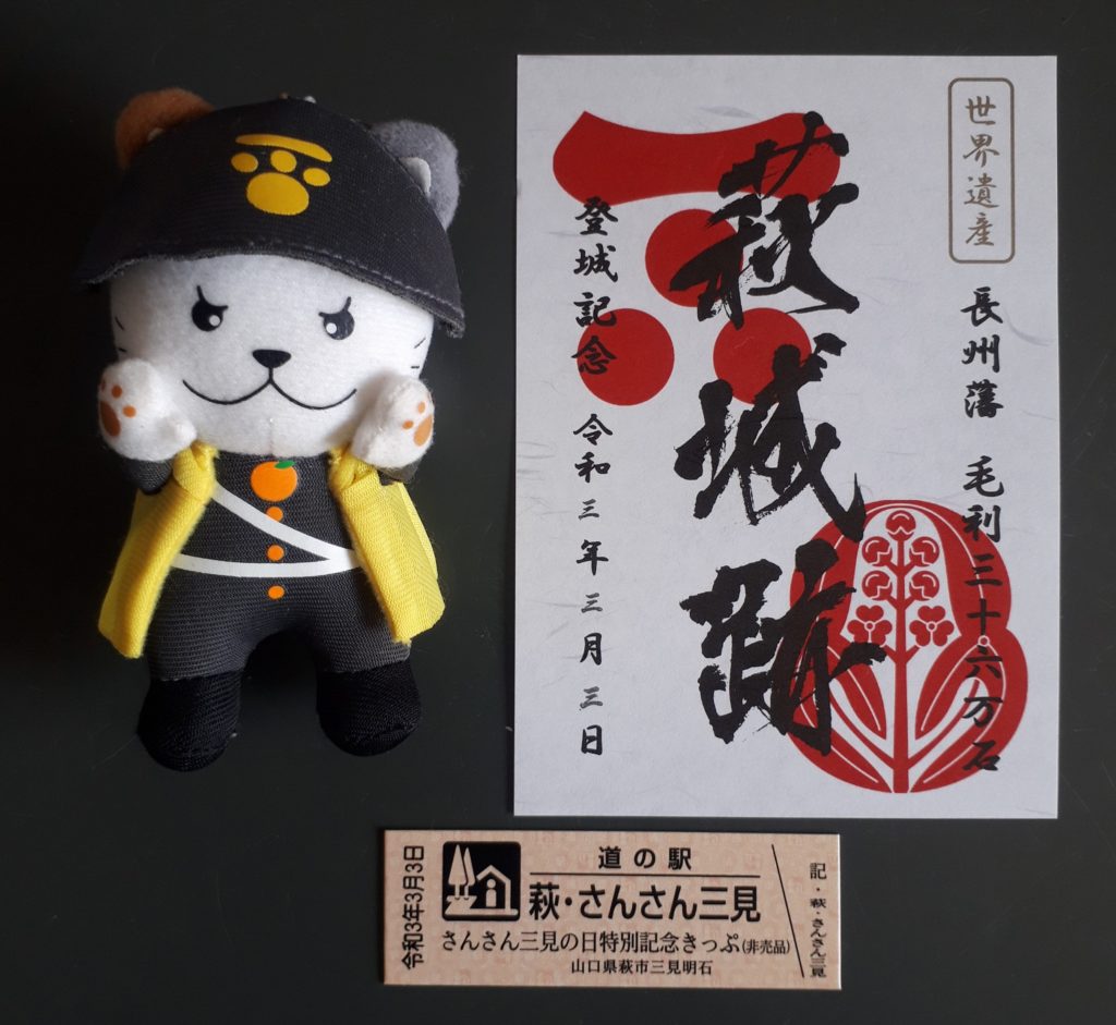 売店の店長とは友人なので、ちょくちょく買い物&冷やかし&暇つぶしに寄らせてもらっていますが、今回はなかなか頭が働いて日付が入る記念品として、萩城跡の御城印(ごじょういん)を手に入れてプレゼントしました。掲示してもらえれば、萩の道の駅らしさが強調されて良いと思いましてね。