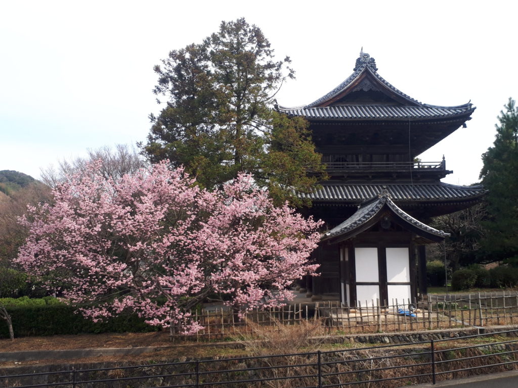 この日は自転車で出かけていき、会場入りする前に東光寺のヨウコウザクラを見て、写真に収めてきました。早咲きの桜で数本植えられていますが、三門脇にあるこの木は特に早く満開に近い状態でした。色合いも濃くて美しいです。