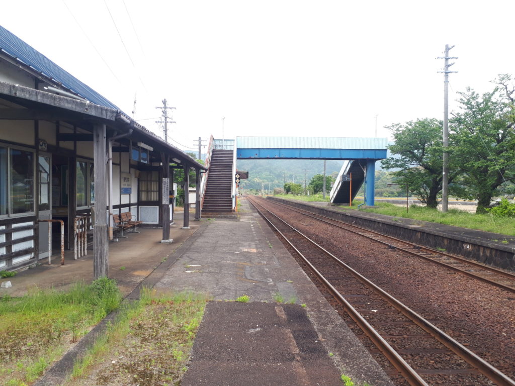 長門大井駅は萩市の駅。国道からはやや外れているので、訪れたのは今回が初めて。なんと、すぐ近くに知り合いの家があることを発見してしまいました。複線になっているように見えますが、山陰本線は単線です。駅では車両がすれ違えるように複線になっているので、そこそこの規模のようにも見えますね。