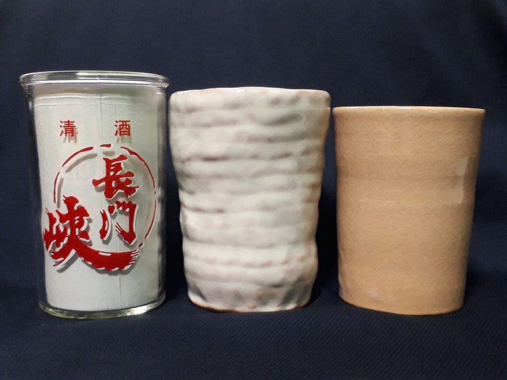 用途は決めていませんが、日本酒のワンカップと並べるとこんな具合です。やはり湯飲みか日本酒用になりそうな予感がします。時々赤ワインを飲むことがあるので、量としては丁度良いかもしれません。