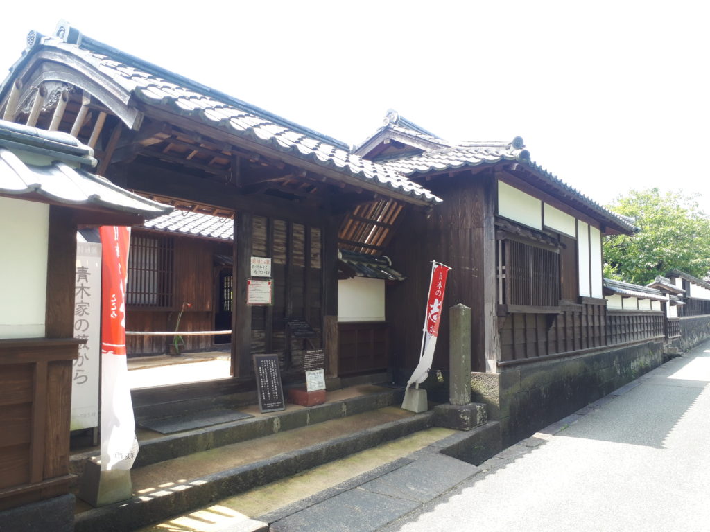 こちらは城下町。江戸屋横丁に面して建つ青木周弼・研蔵・周蔵旧宅です。那須塩原市の道の駅明治の森・黒磯内に建つ旧青木家那須別邸は周蔵の青木農場に作られた洋風の別荘です。周蔵は、周弼の弟の研蔵の養子にあたります。